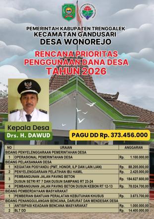 Pelaporan Publikasi Fokus Penggunaan Dana Desa Tahun Anggaran 2026 Desa Wonorejo